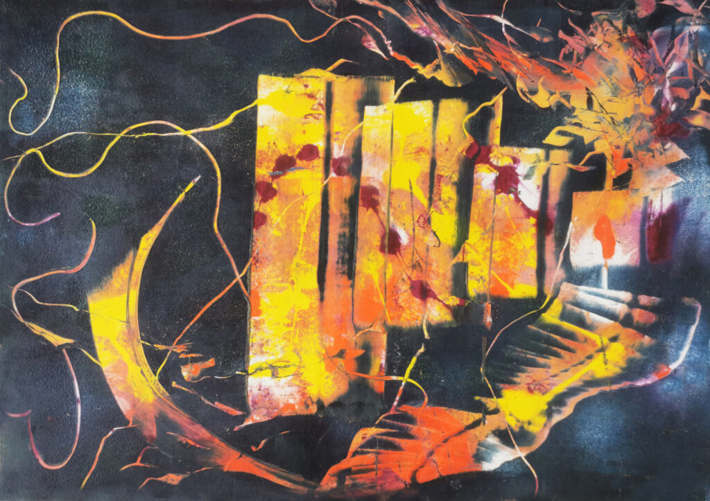 Mes peintures sont le fruit d’une danse entre émotions, matière et expérimentation, toujours accompagnée par la musique, qui infuse une dynamique propre à chaque œuvre.